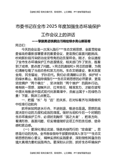 市委书记在全市2025年度加强生态环境保护工作会议上的讲话.docx
