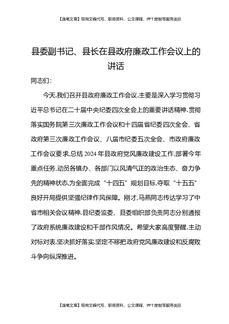 县委副书记县长在县政府廉政工作会议上的讲话.docx