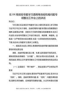 在XX局党组专题学习酒局等违规吃喝问题专项整治工作会上的讲话.docx