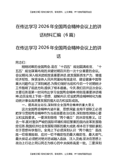 在传达学习2026年全国两会精神会议上的讲话材料汇编(6篇).docx