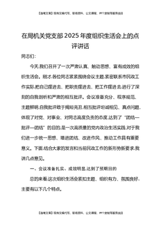 在局机关党支部2025年度组织生活会上的点评讲话.docx