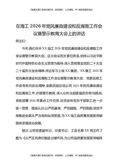 在海工2026年党风廉政建设和反腐败工作会议暨警示教育大会上的讲话.docx