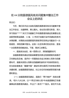 在XX分院医德医风有关问题集中整治工作会议上的讲话.docx