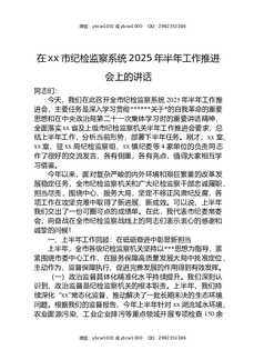 在XX市纪检监察系统2025年半年工作推进会上的讲话.docx