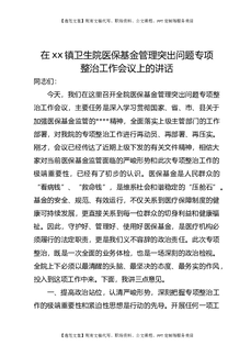 在XX镇卫生院医保基金管理突出问题专项整治工作会议上的讲话.docx