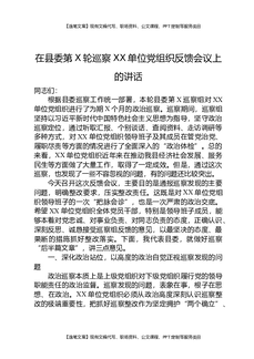 在县委第X轮巡察XX单位党组织反馈会议上的讲话.docx