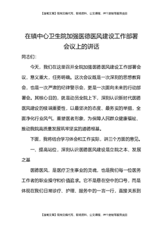 在镇中心卫生院加强医德医风建设工作部署会议上的讲话.docx