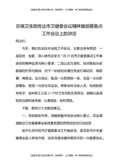 在镇卫生院传达市卫健委会议精神暨部署重点工作会议上的讲话.docx