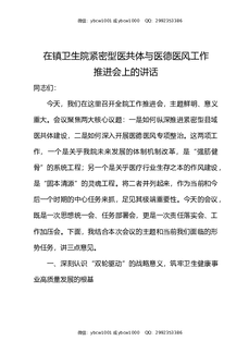 在镇卫生院紧密型医共体与医德医风工作推进会上的讲话.docx