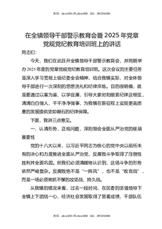 在全镇领导干部警示教育会暨2025年党章党规党纪教育培训班上的讲话.docx