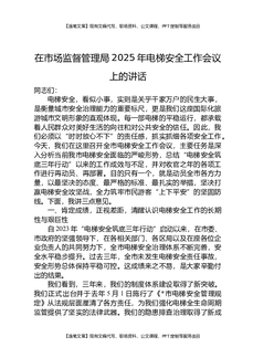 在市场监督管理局2025年电梯安全工作会议上的讲话.docx