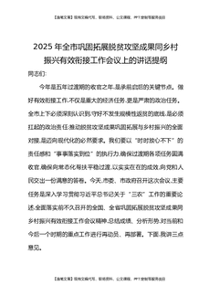 2025年全市巩固拓展脱贫攻坚成果同乡村振兴有效衔接工作会议上的讲话提纲.docx