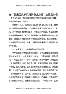 在“弘扬优良家风凝聚奋进力量”主题宣讲会上的讲话:传承家风担使命,共筑家国新气象.docx