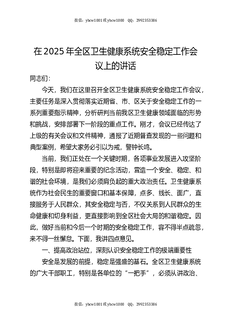 全区卫生健康系统安全稳定工作会议上的讲话.docx