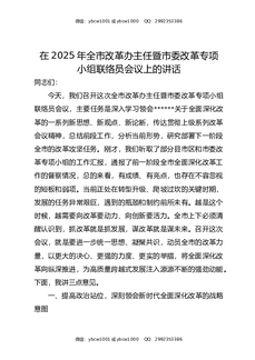 在2025年全市改革办主任暨市委改革专项小组联络员会议上的讲话.docx