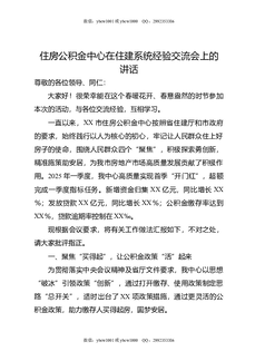 住房公积金中心在住建系统经验交流会上的讲话.docx
