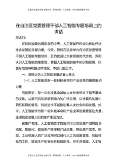 在自治区党委管理干部人工智能专题培训上的讲话.docx