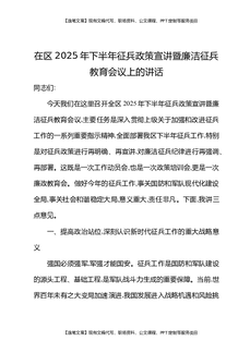 2025年下半年征兵政策宣讲暨廉洁征兵教育会议上的讲话.docx
