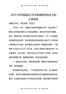 2025年作风建设工作专班调研评估会上的汇报讲话.docx