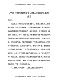 2025年暴雨红色预警应对工作部署会上的讲话.docx