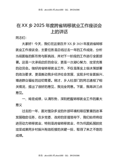 在XX乡2025年度跨省转移就业工作座谈会上的讲话.docx