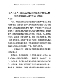 在XX县XX医院医德医风问题集中整治工作动员部署会议上的讲话(精品).docx