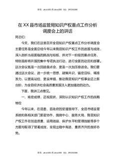 在XX县市场监管局知识产权重点工作分析调度会上的讲话.docx