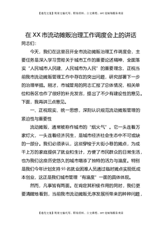 在XX市流动摊贩治理工作调度会上的讲话.docx