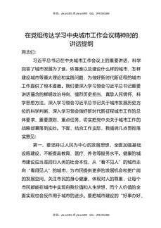 在党组传达学习中央城市工作会议精神时的讲话提纲.docx