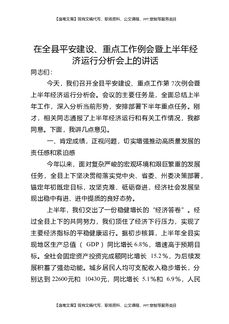 在全县平安建设、重点工作例会暨上半年经济运行分析会上的讲话.docx