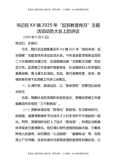 书记在XX镇2025年“反邪教宣传月”主题活动动员大会上的讲话.docx
