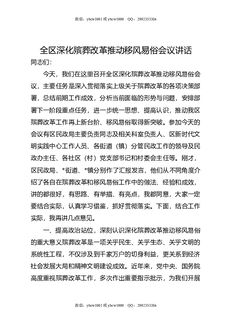 全区深化殡葬改革推动移风易俗会议讲话.docx