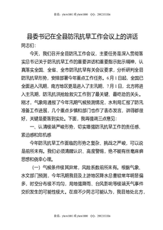 县委书记在全县防汛抗旱工作会议上的讲话.docx