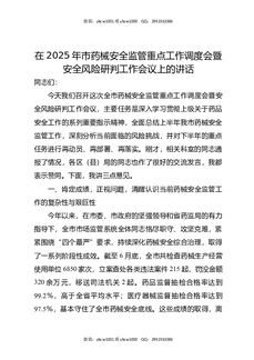 在2025年市药械安全监管重点工作调度会暨安全风险研判工作会议上的讲话.docx