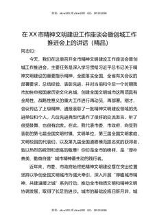 在XX市精神文明建设工作座谈会暨创城工作推进会上的讲话(精品).docx