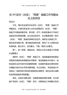 在XX区村(社区)“两委”换届工作专题会议上的讲话.docx