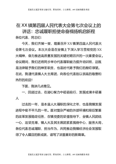在XX镇第四届人民代表大会第七次会议上的讲话:忠诚履职担使命,奋楫扬帆启新程.docx