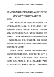 在乡巩固拓展脱贫攻坚成果同乡村振兴有效衔接驻村第一书记座谈会上的讲话.docx