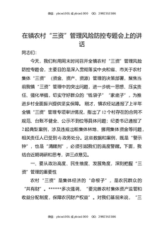 在镇农村“三资”管理风险防控专题会上的讲话.docx