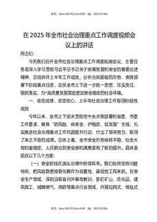 全市社会治理重点工作调度视频会议上的讲话.docx