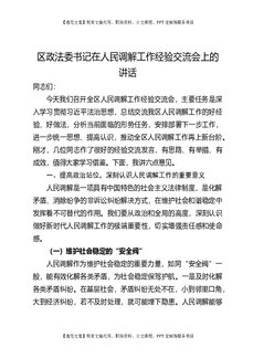 区政法委书记在人民调解工作经验交流会上的讲话.docx