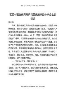 区委书记在优秀共产党员先进事迹分享会上的讲话.docx