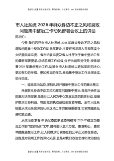 市人社系统2026年群众身边不正之风和腐败问题集中整治工作动员部署会议上的讲话.docx