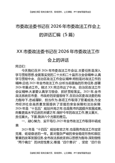 市委政法委书记在2026年市委政法工作会上的讲话汇编(5篇).docx