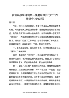 在全县攻坚冲刺第一季度经济开门红工作推进会上的讲话.docx
