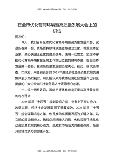 在全市优化营商环境暨高质量发展大会上的讲话.docx