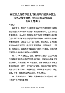 在区群众身边不正之风和腐败问题集中整治攻坚决战年暨优化营商环境动员部署会议上的讲话.docx