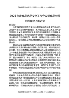 2026年度食品药品安全工作会议暨食品专题培训会议上的讲话.docx