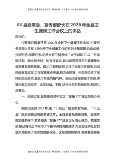 XX县委常委、宣传部部长在2026年全县卫生健康工作会议上的讲话.docx