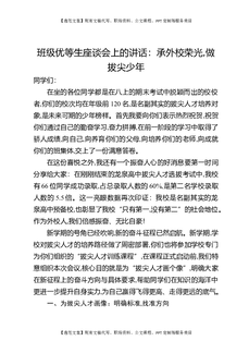 班级优等生座谈会上的讲话:承外校荣光,做拔尖少年.docx